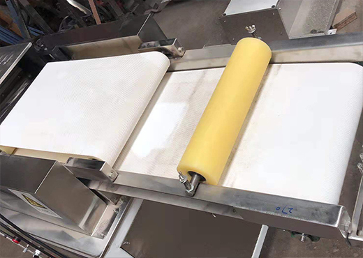 多功能切断机仅通过更换后端压辊就可切断:网格锅巴,沙拉条,沙拉片,大片脆,麻花,苦荞片,地锅脆片,空心薯条,一根葱等休闲膨化零食。